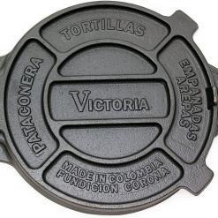 Victoria 8 Inch Cast Iron Tortilla Press. Tortilla Maker, Flour Tortilla press, Rotis Press, Dough Press, Pataconera Seasoned with Flaxeed Oil, Black – Size:8″ – Made in Colombia.