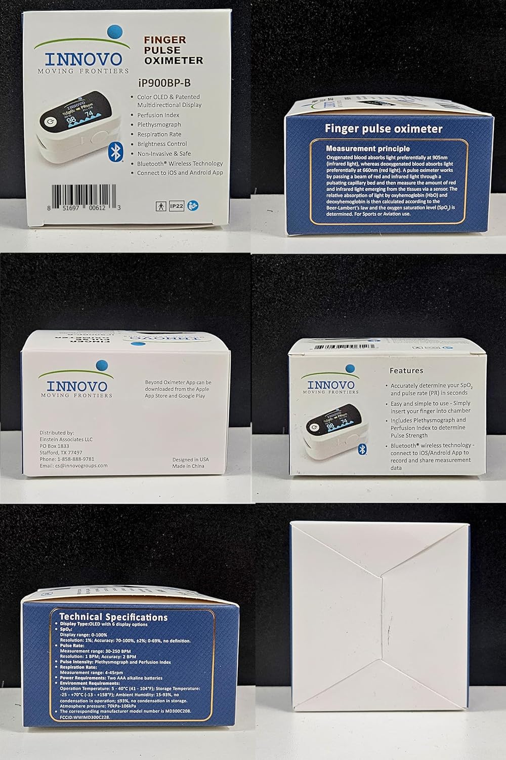 - Accurate and Reliable – The Innovo iP900BP-B Finger Pulse Oximeter is a premium model with an improved LED and sensor, allowing SpO2 and pulse rate measurement even at low blood perfusion.