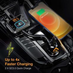 What a great transmitter! I can comfortably transmit and play audio through my car stereo via new Bluetooth 5.0 using FM Radio or through the AUX Jack all while charging my phone. And with the QC 3.0 I’m able to stream my favorite music direct from my phone wirelessly or by connecting a USB flash drive of up to 64GB! Try this product and you wont be disappointed.