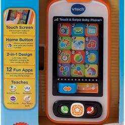 The Touch and Swipe Baby Phone by VTech captures your child’s imagination with their very own smartphone for role-play fun! Slide between screens for two modes of play on this educational toy with twelve light-up pretend learning apps or switch to Music mode to play fun melodies and sing-along songs.