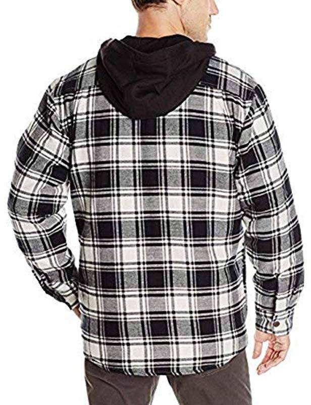 Wrangler Authentics quilted flannel jacket with hood features polyester lined body, interior, two pockets, and brushed flannel exterior making it the perfect jacket for those cold winter nights. The jacket offers versatility, comfort, and warmth, making it a fall and winter essential.